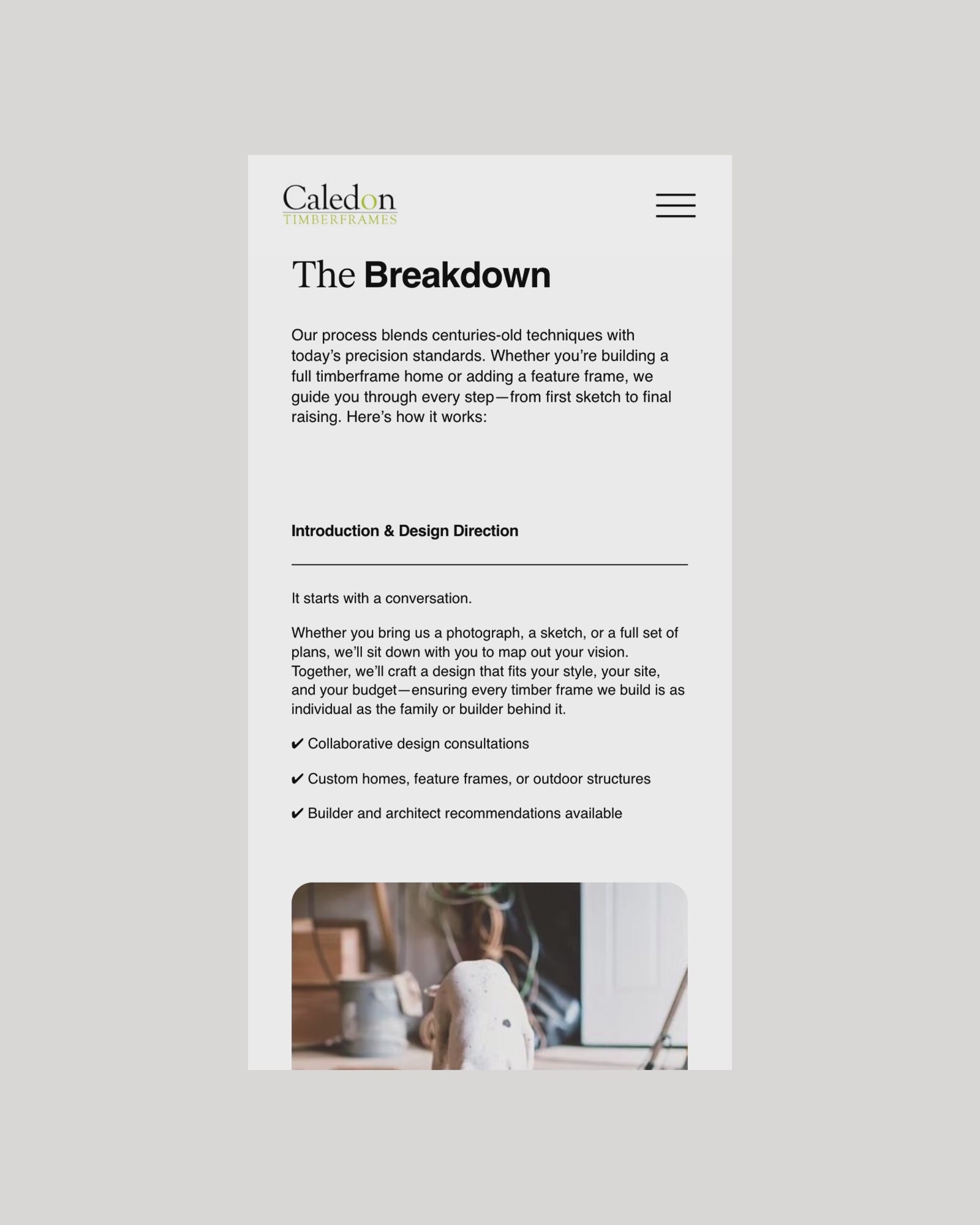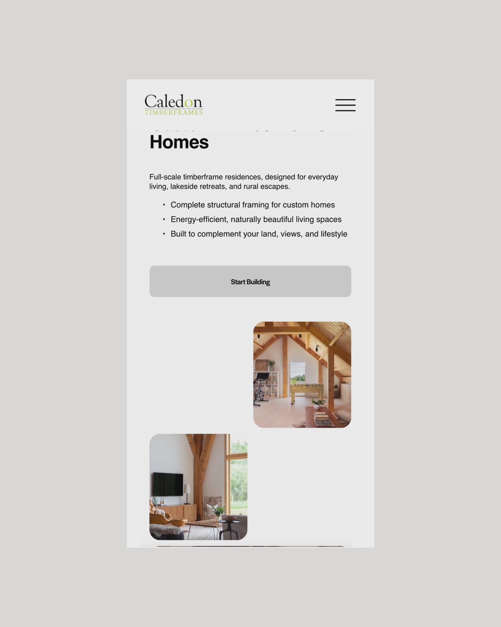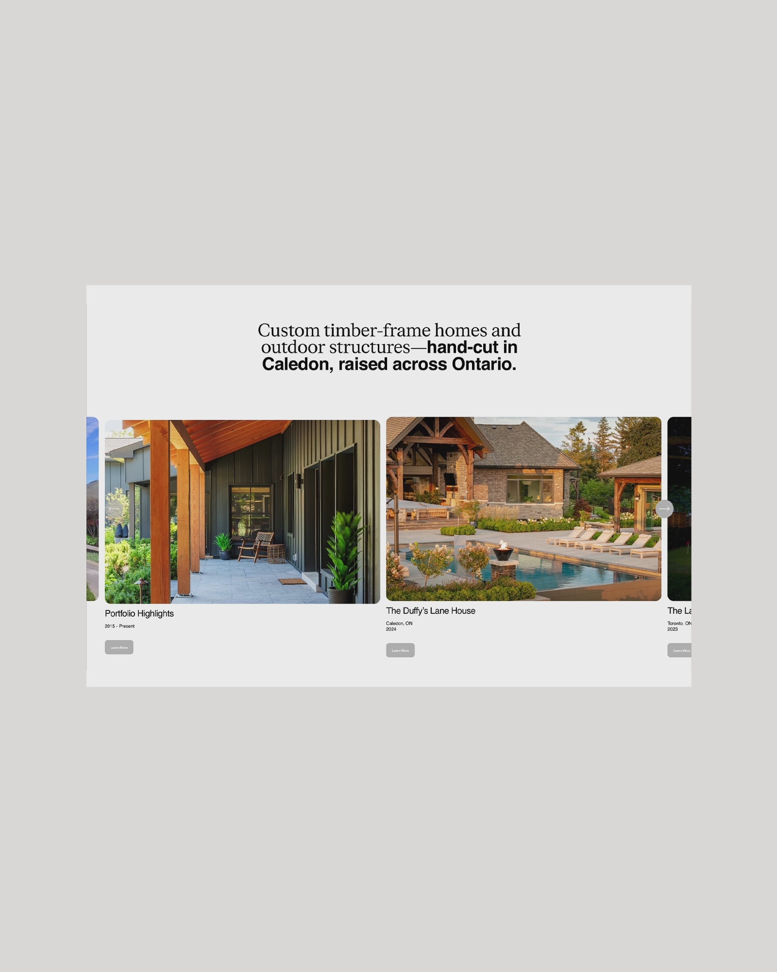 A long-standing name in Caledon’s timber frame industry, Caledon Timberframes connected with Mutual Friends to modernise their digital presence. The agency brought us in to lead design and development. We created a new Squarespace website: easy to update, visually rich, and built with the founders’ in mind. The result is a site that finally reflects the quality and care behind every beam they place.